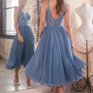 Marion Tea Length Gown – Smoky Blue