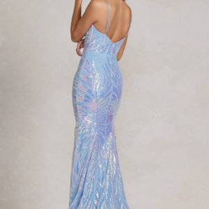 Sequin Sweetheart Neckline Leaf Gown | Blue